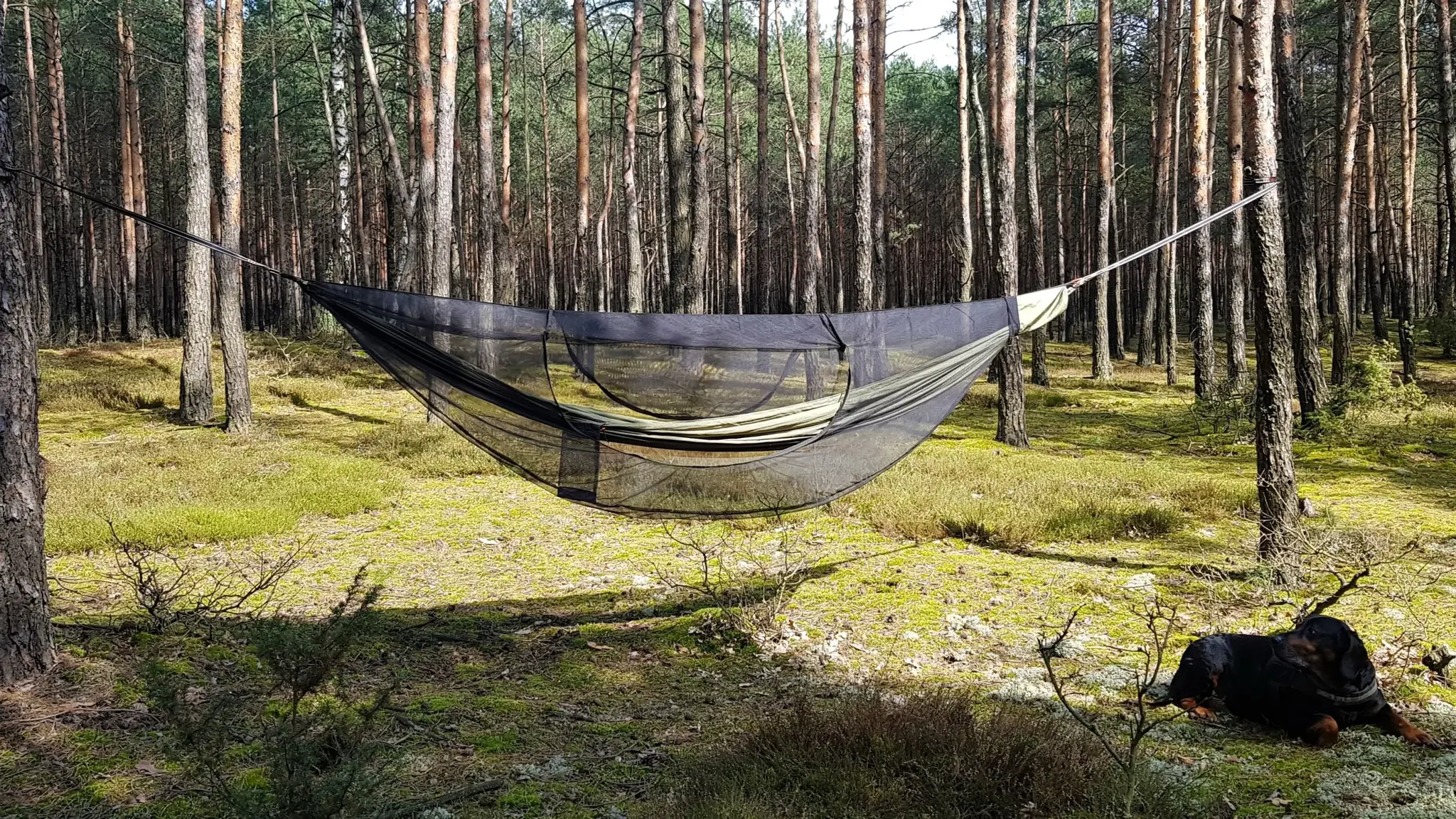 - Muskietennet omsluit de volledige hangmat; maximale bescherming