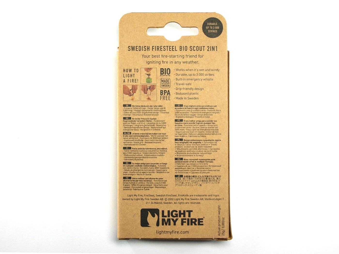 De Bio serie producten van Light My Fire bevatten nu plastic onderdelen gemaakt van BioPlastic. Een plastic vorm die wordt verkregen uit biologische grondstoffen en/of biologisch afbreekbaar zijn. Hiermee zorgt Light My Fire voor een verkleining van de ecologische impact van haar producten en stimuleren ze het gebruik van CO2 neutrale materialen.