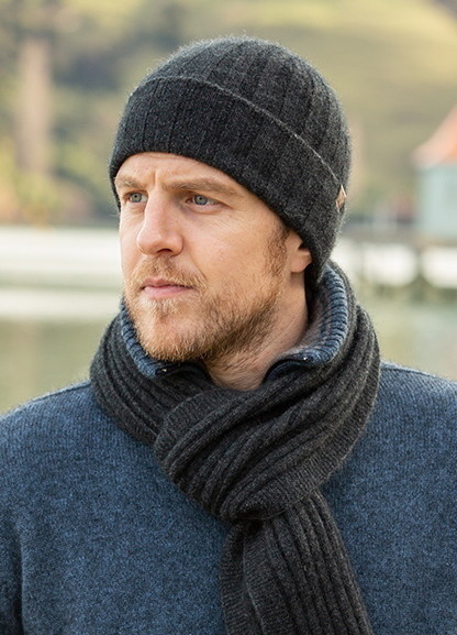 Weft Possum Merino Rib Beanie - Muts - Charcoal